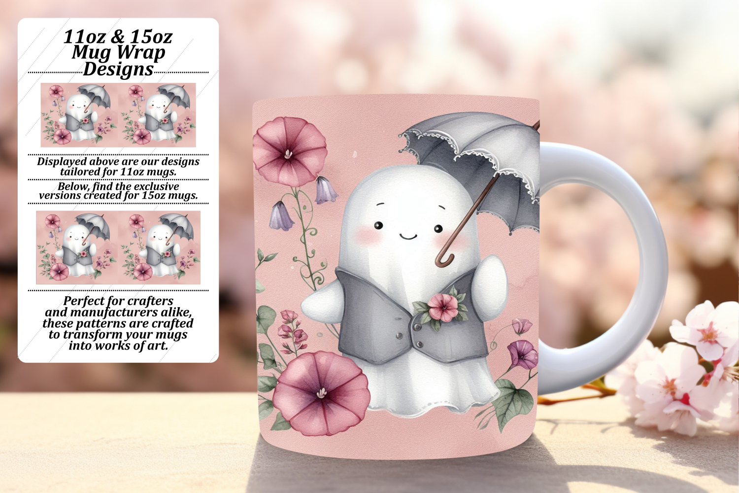 CUSTOM PNG Mug Wrap Design 11oz , Cute Ghost