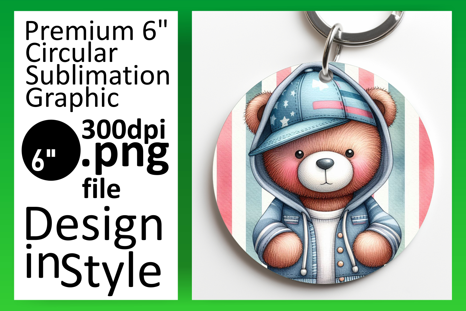 Bright Circle Design Keychain Template , Teddy Bear example image 1