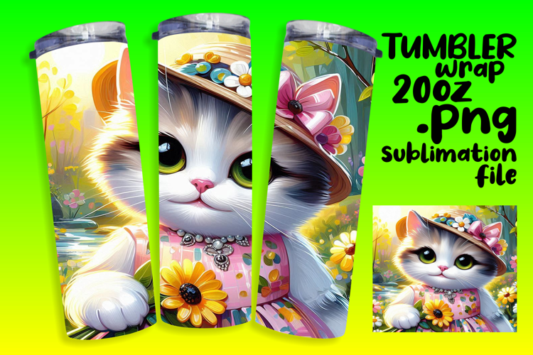 GRACEFUL 20oz PNG Tumbler Wrap , Cute Cat example image 1