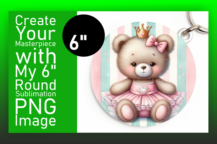 Vibrant Circle PNG Coaster Artwork , Teddy Bear example image 1