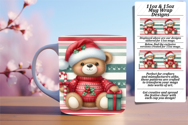 Fresh 15oz Mug Wrap Png Design , Teddy Bear example image 1