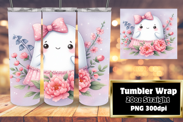 ELEGANT PNG for 20oz Tumbler , Cute Ghost example image 1