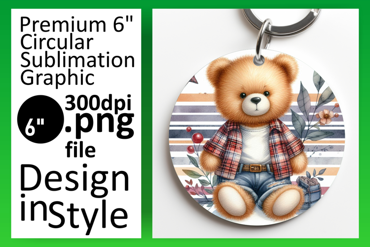 Chic Round Design Keychain PNG , Teddy Bear example image 1