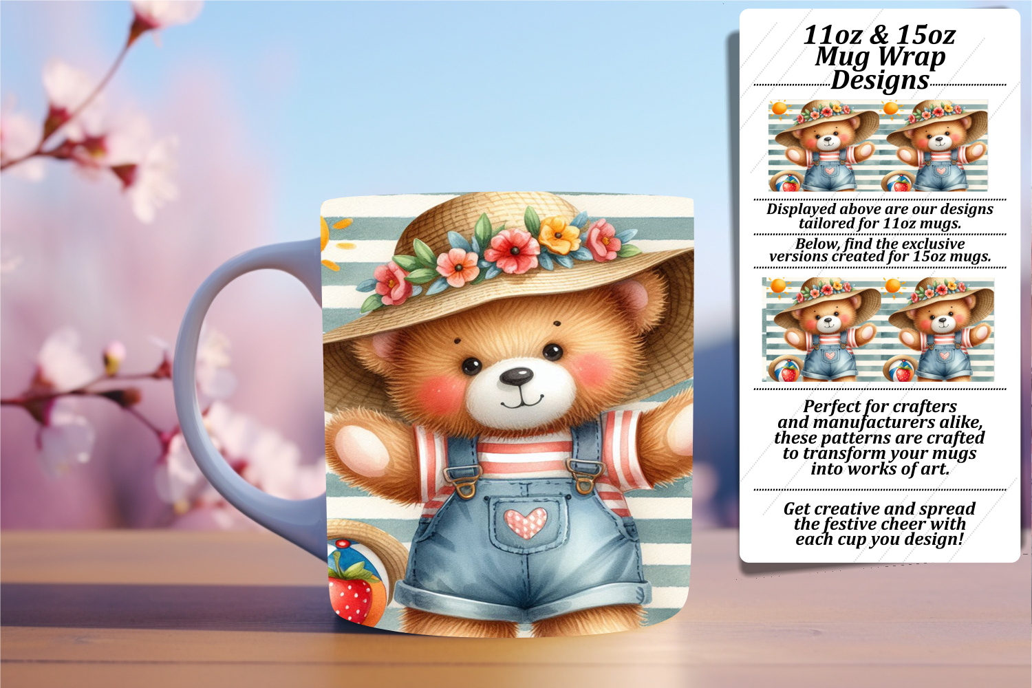 Classic 11oz Mug Wrap Png Design , Teddy Bear example image 1