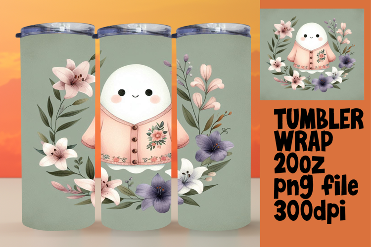 20oz Tumbler Design for Sublimation , Cute Ghost