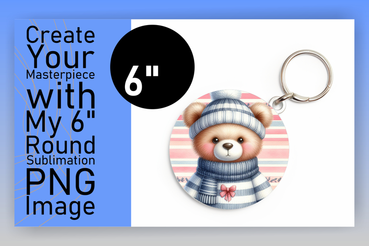 Gorgeous Round Design Keychain PNG , Teddy Bear example image 1