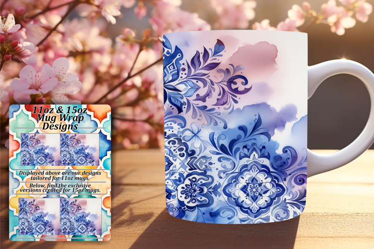 Custom 11oz Mug Wrap Png Design , Watercolor Patter