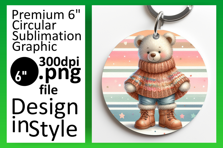 Elegant Round Design Sublimation PNG , Teddy Bear example image 1