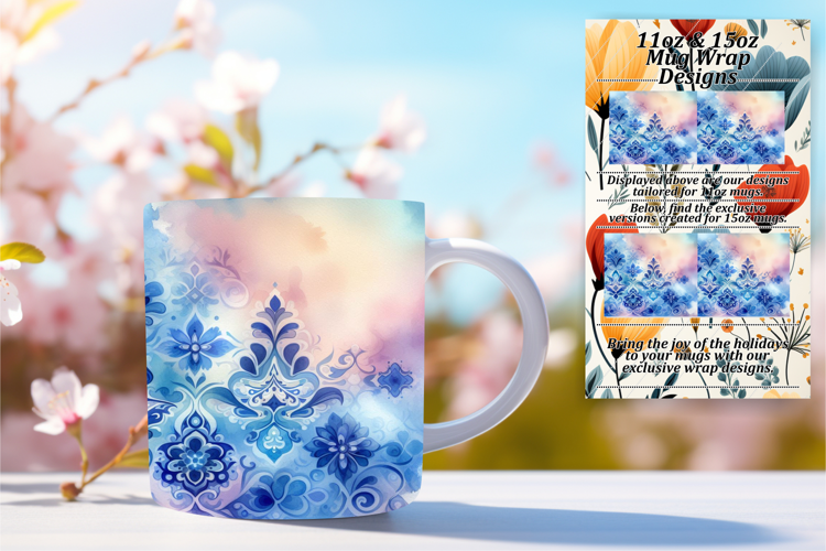 Graceful 11oz Mug Wrap Png Template , Watercolor Patter