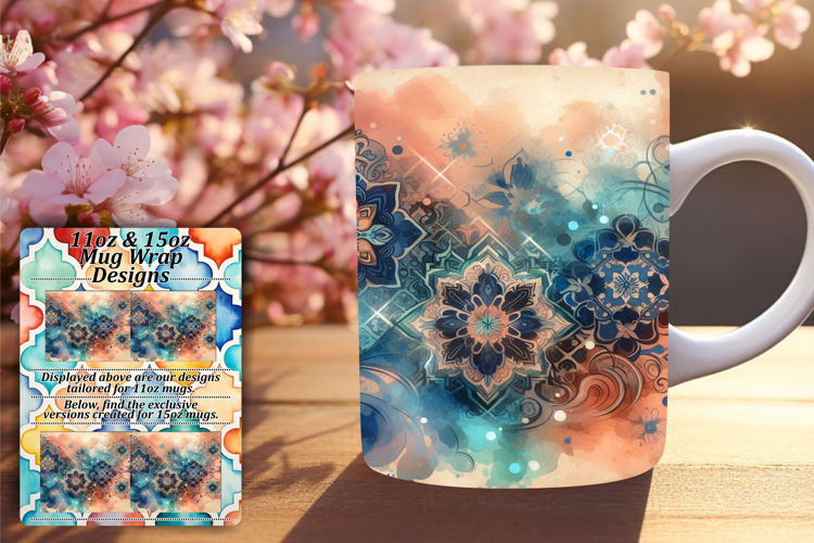 Fancy 11oz Mug Wrap Png Design , Watercolor Patter example image 1