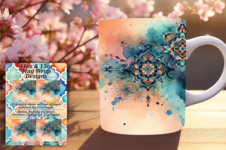 Floral 11oz Mug Wrap Png Template , Watercolor Patter
