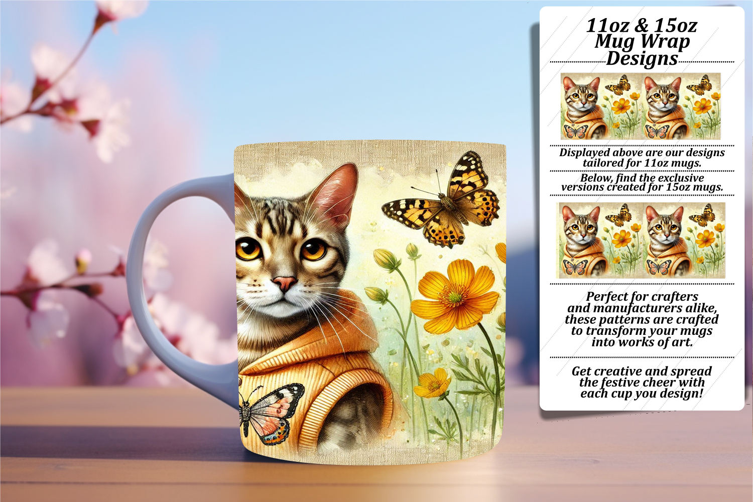 Bright 11oz Mug Wrap Png Artwork , Cute Cat example image 1