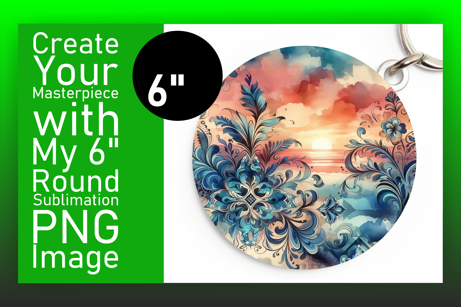 Artistic Circle PNG Coaster Design , Watercolor Patter example image 1