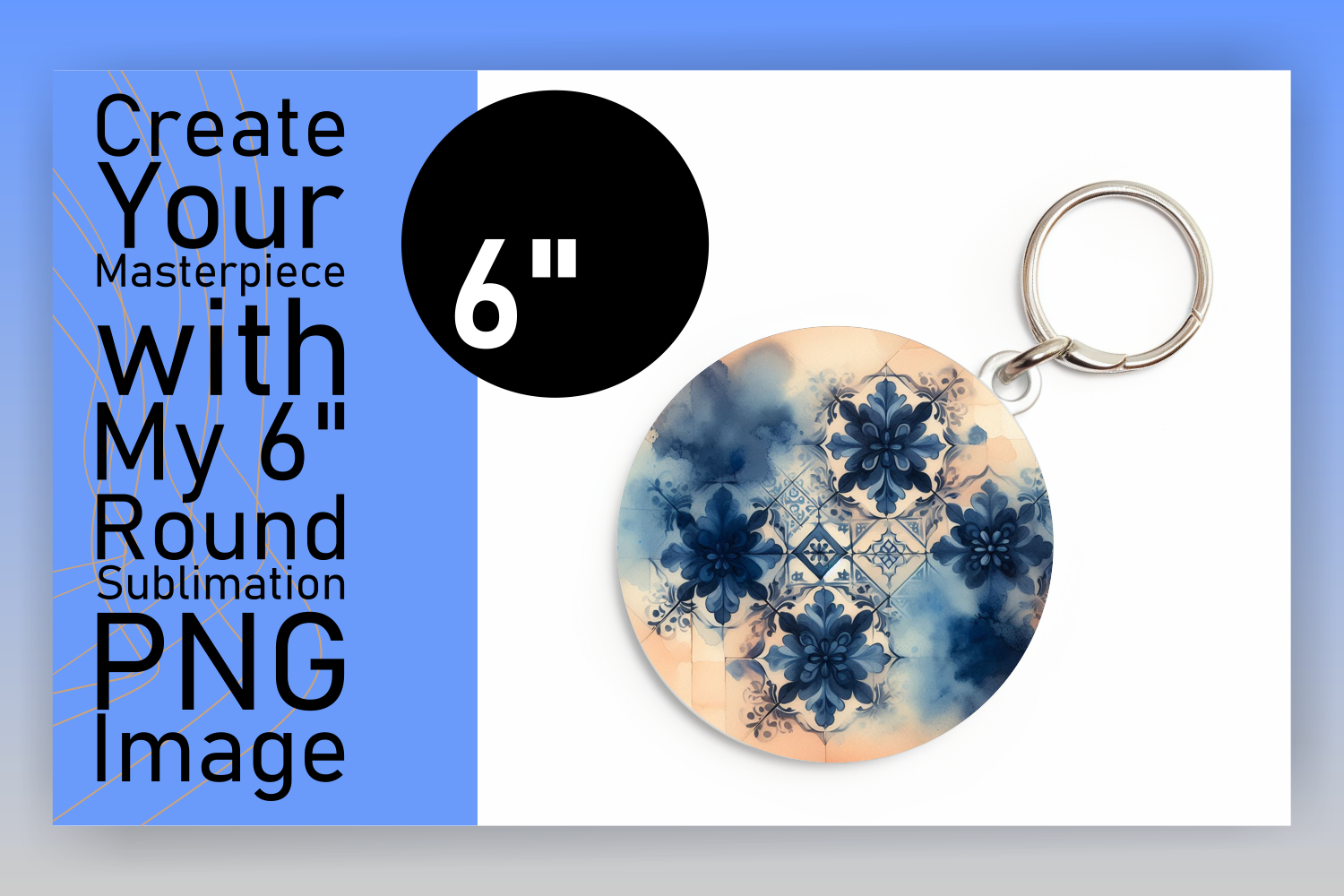 Vibrant Round Design Keychain Template , Watercolor Patter example image 1
