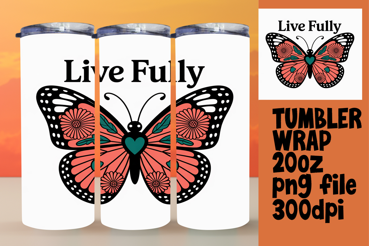 Similar Design Products to Creative Tumbler Wrap Template , Butterfly