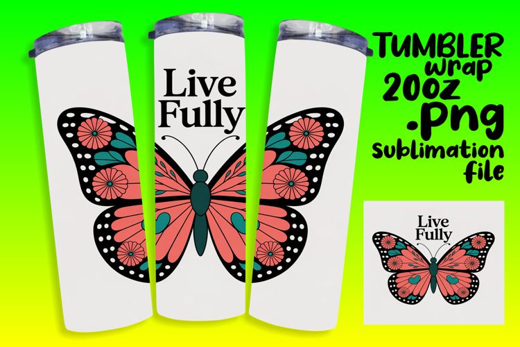 20oz Sublimation Tumbler Wrap , Butterfly example image 1