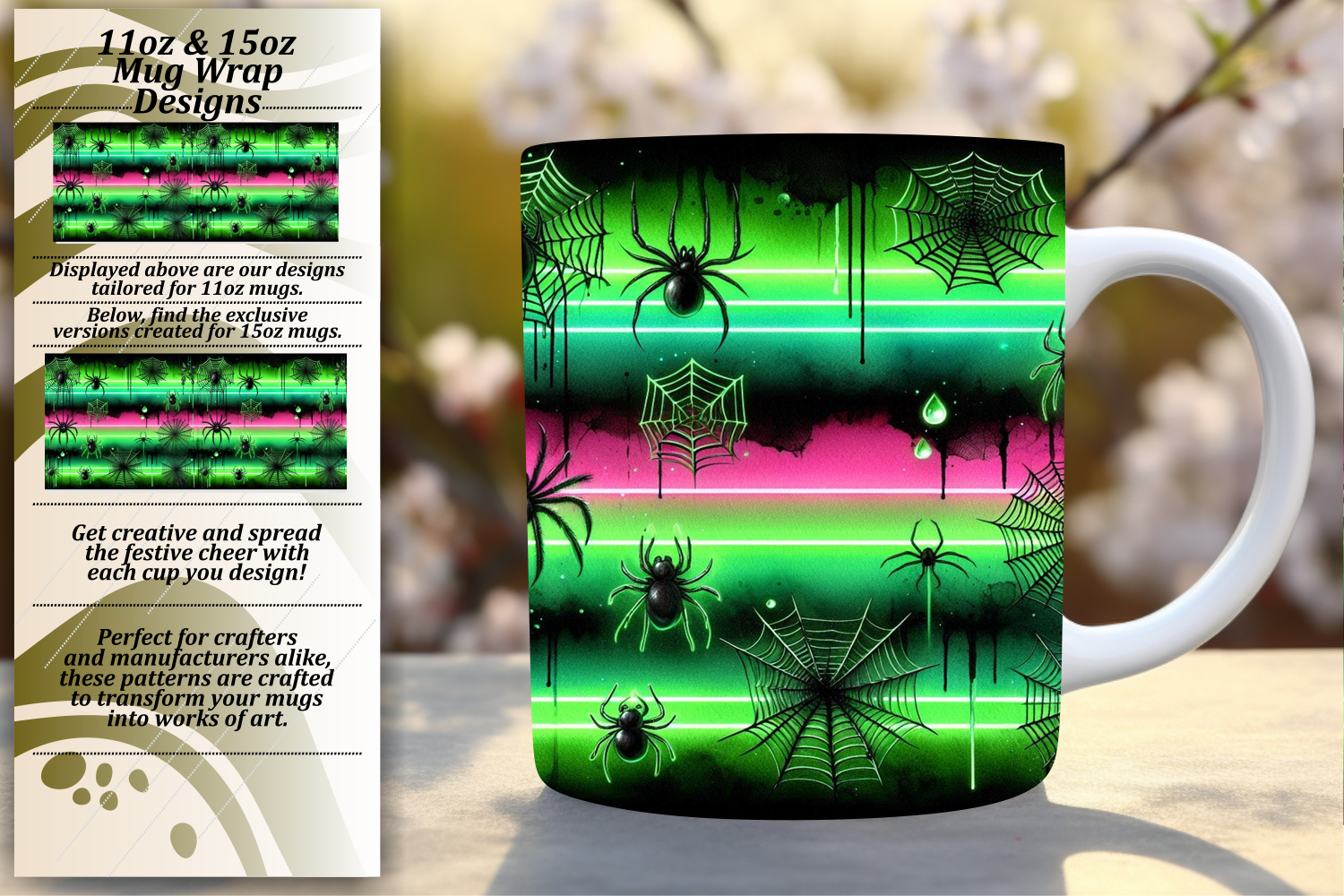 Stylish 11oz Mug Wrap Png Artwork , Halloween