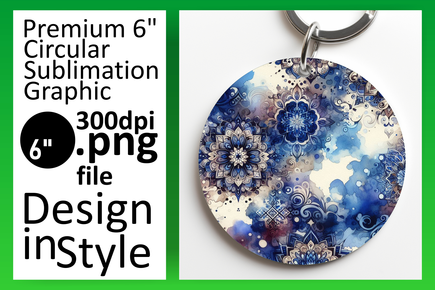 Chic Keychain Circle Design Template , Watercolor Patter example image 1