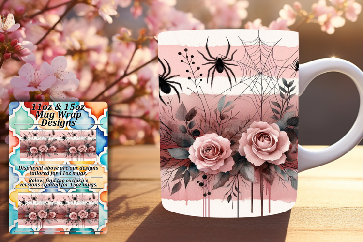 Floral 15oz Mug Wrap Png Design , Halloween example image 1