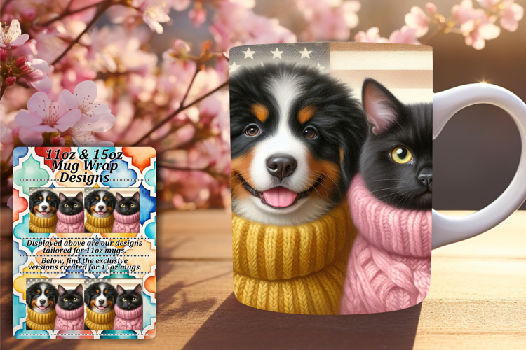 Creative 11oz Mug Wrap Png Artwork , Dog and cat example image 1