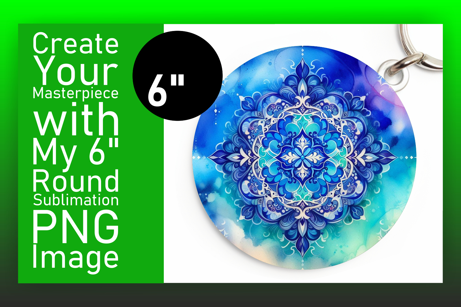 Whimsical Circle Design Keychain Template , Watercolor Patte