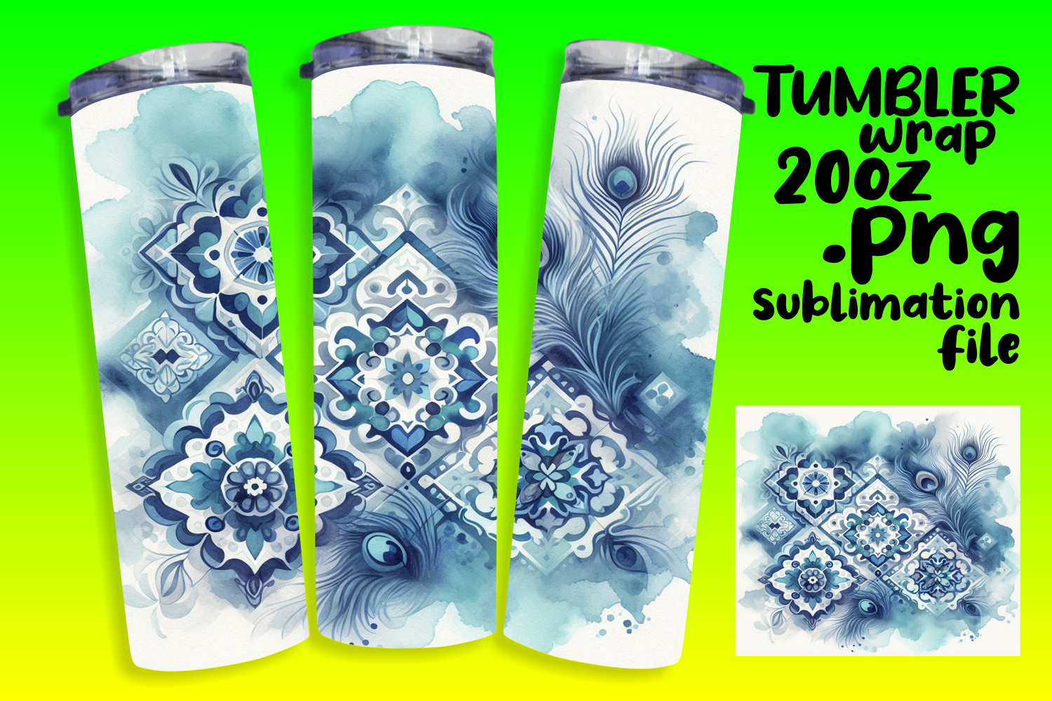 Custom 20oz Tumbler Wrap Download , Watercolor Patter example image 1