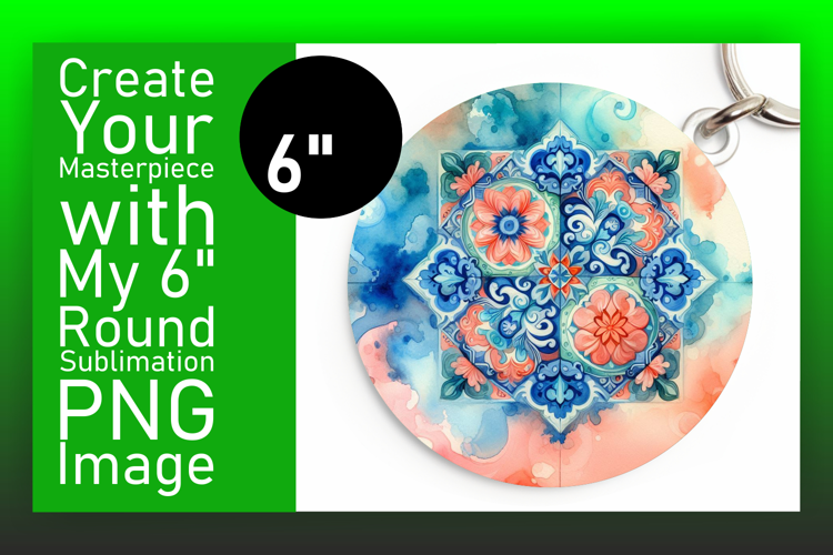 Elegant Round Design Keychain Template , Watercolor Patter example image 1