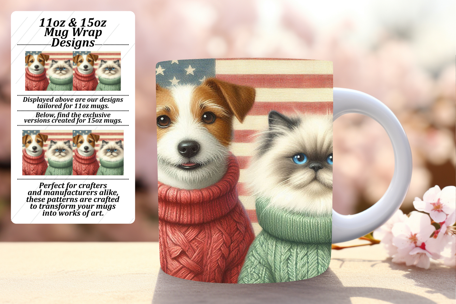 Lovely 15oz Mug Wrap Png Design , Dog and cat