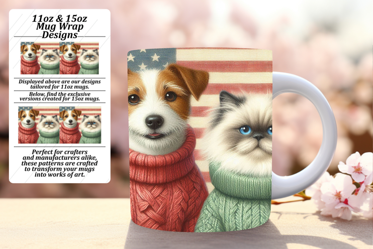 Lovely 15oz Mug Wrap Png Design , Dog and cat example image 1