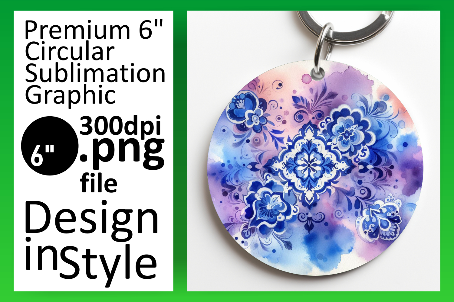 Charming Round Design Keychain PNG , Watercolor Patter example image 1