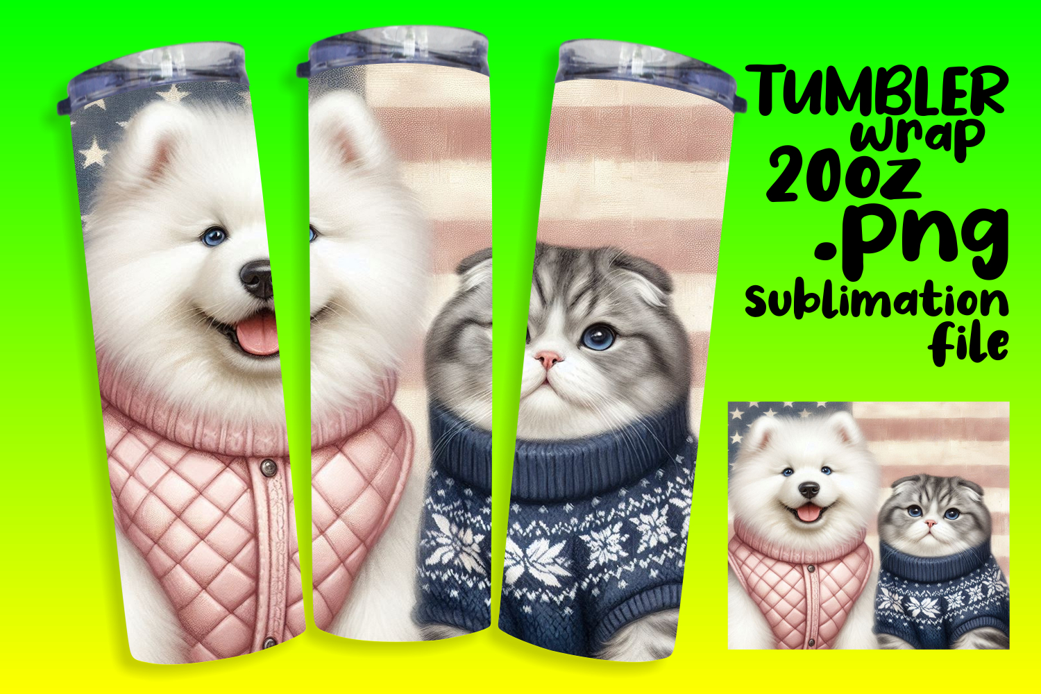 Sublimation Tumbler Template 20oz , Dog and cat example image 1