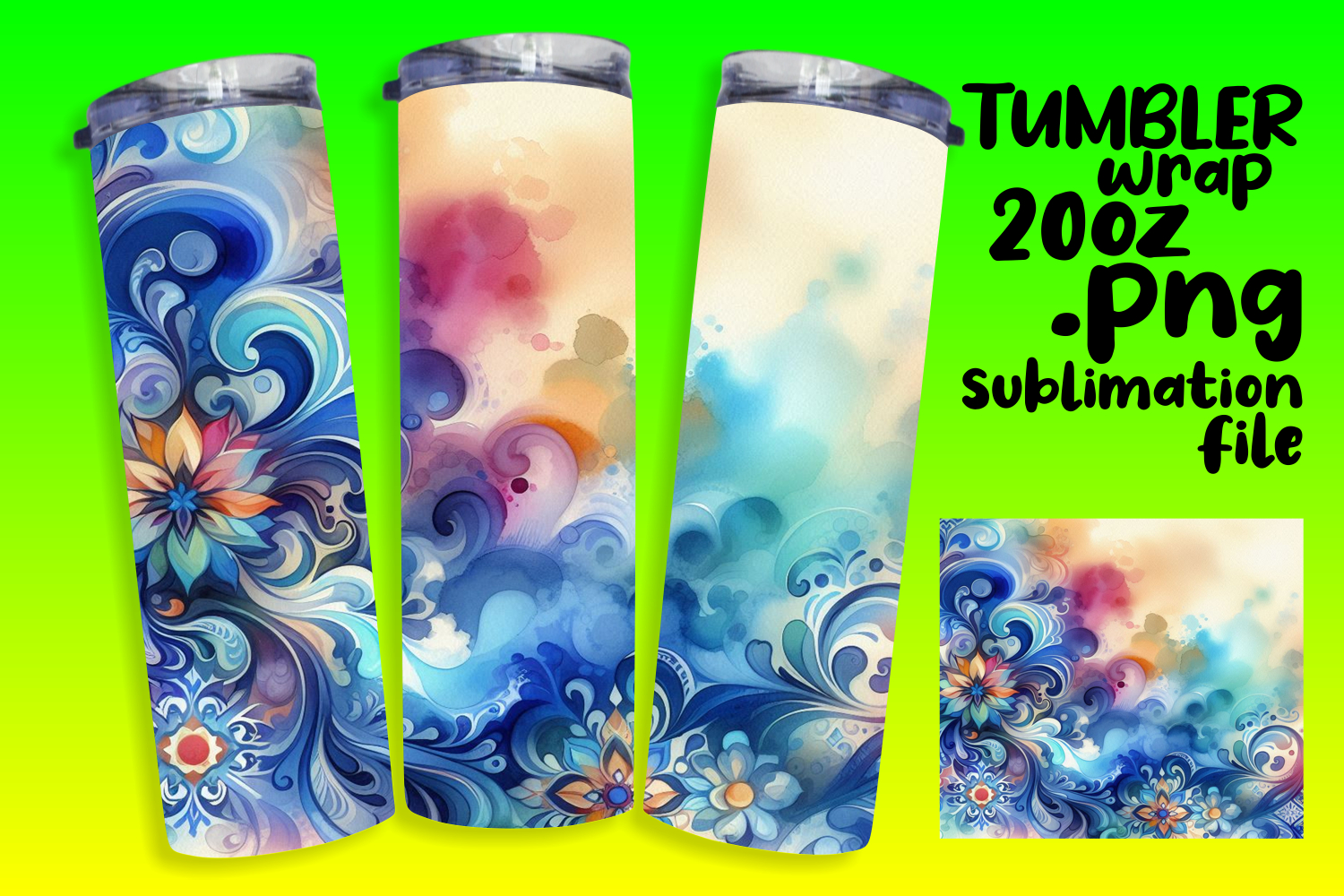Charming 20oz Tumbler Design , Watercolor Patter example image 1