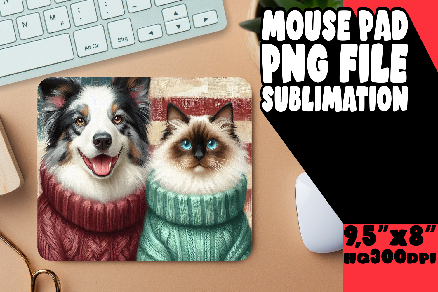 Bright MOUSE PAD Artistic PNG, Dog and cat example image 1