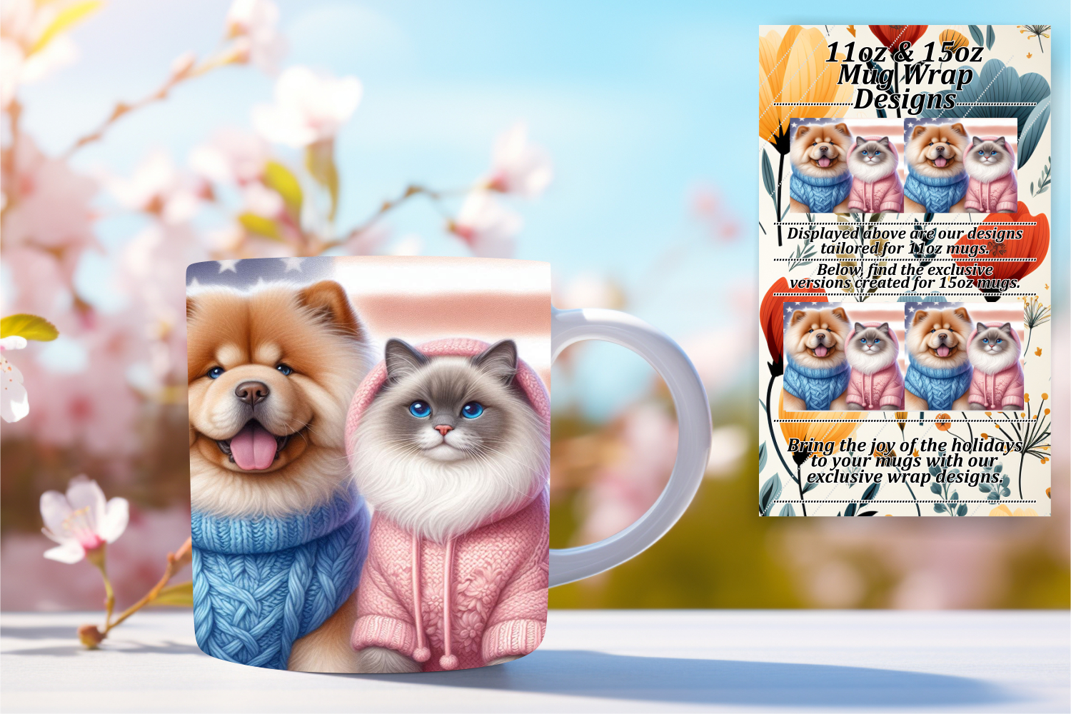 Vibrant 11oz Mug Wrap Png Artwork , Dog and cat example image 1