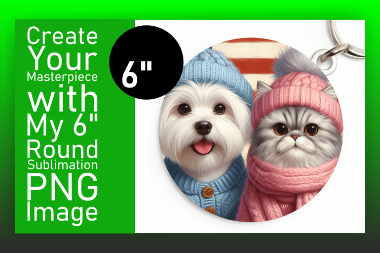 Trendy Circle Design Sublimation PNG , Dog and cat example image 1