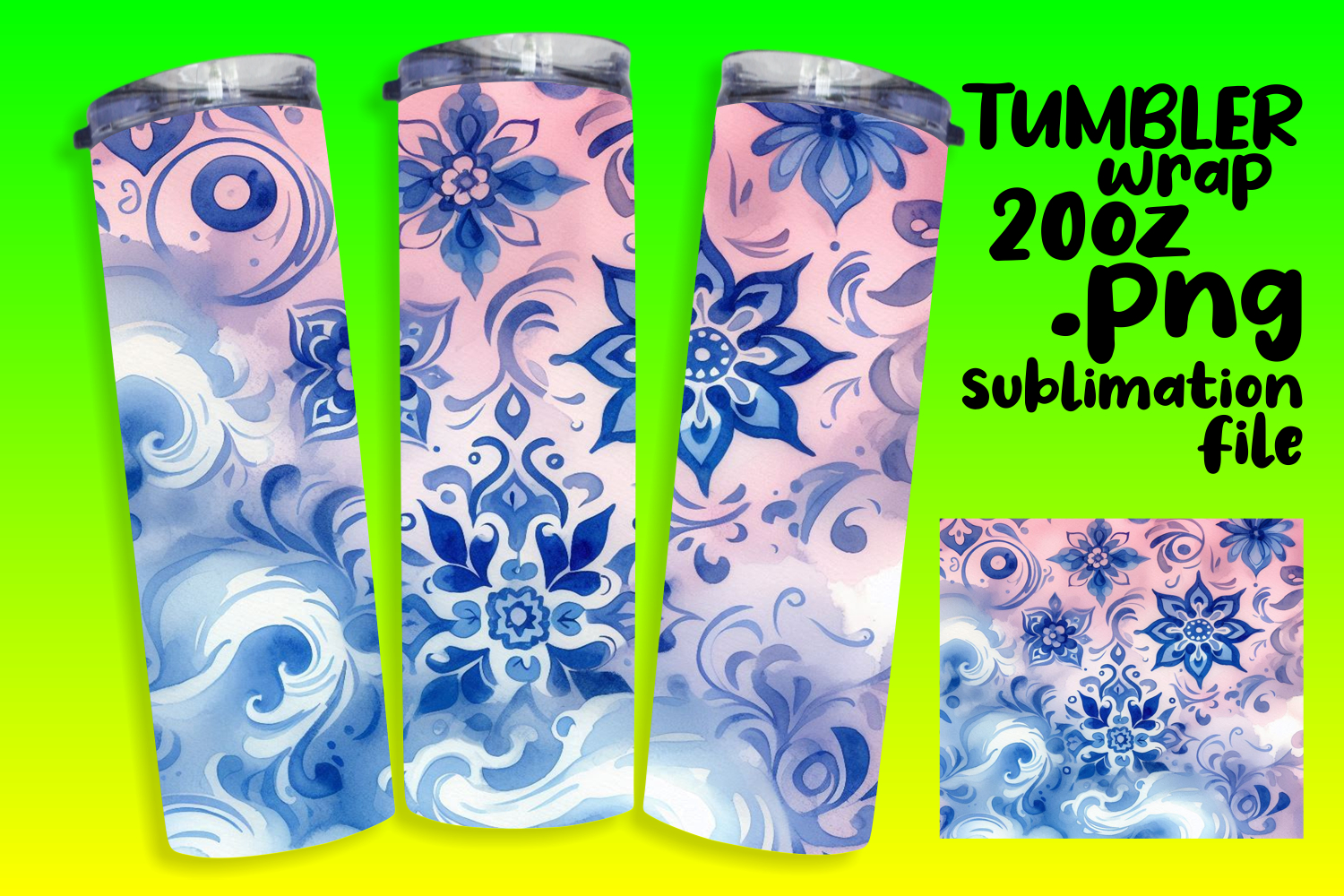 Bright 20oz Tumbler Wrap Design , Watercolor Patter example image 1