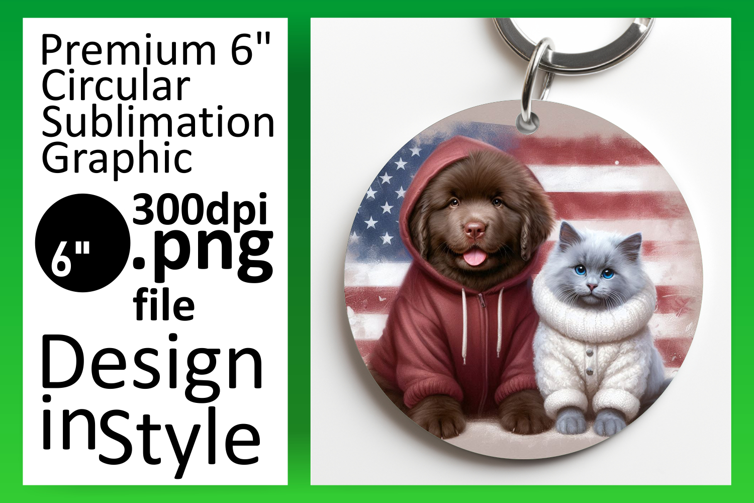Dynamic Round Design PNG Keychain , Dog and cat example image 1