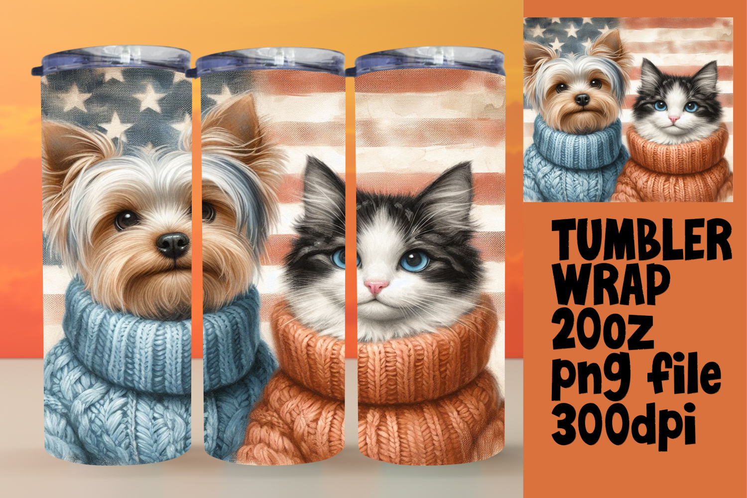 Sublimation Graphics for 20oz Tumbler , Dog and cat example image 1