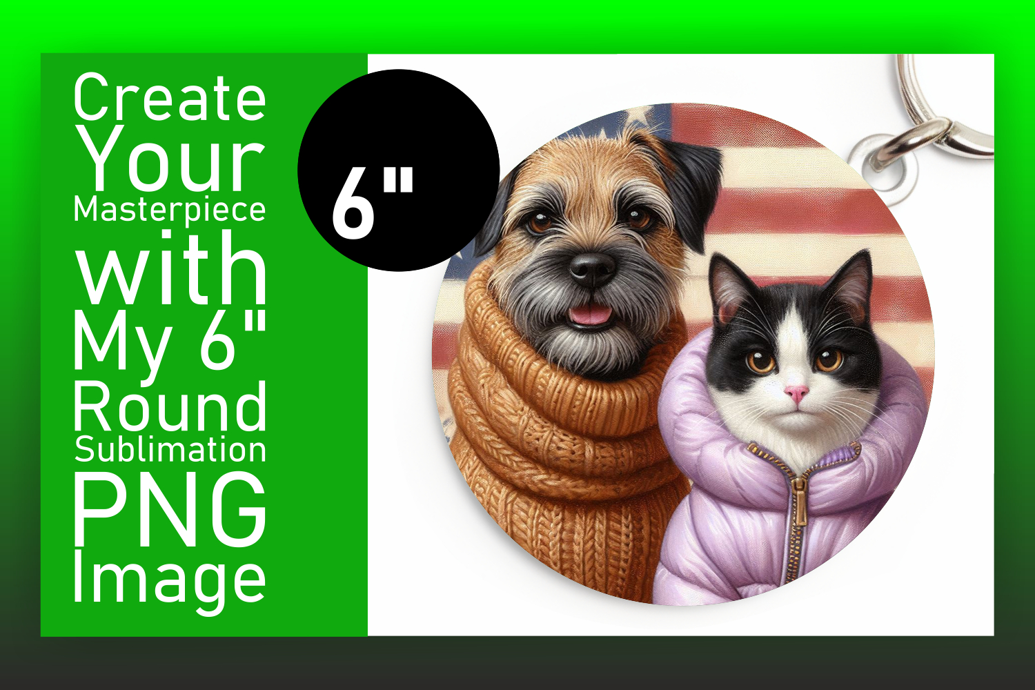 Artful Keychain Circle Design Template , Dog and cat