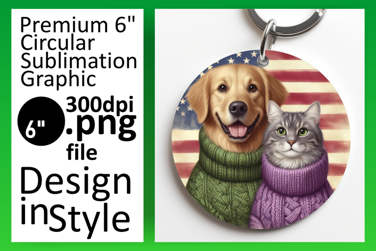 Bright Round Design PNG for Coasters , Dog and cat example image 1
