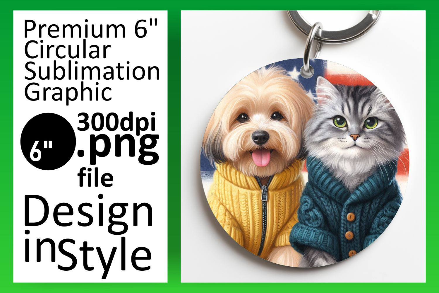 Sophisticated Circle PNG Keychain Artwork , Dog and cat example image 1