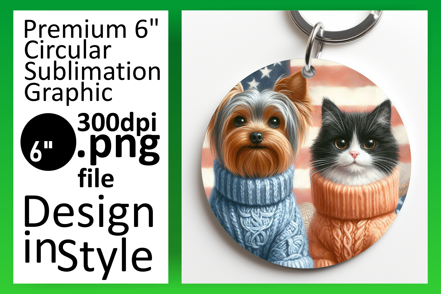 Elegant Circle Design Keychain Template , Dog and cat example image 1
