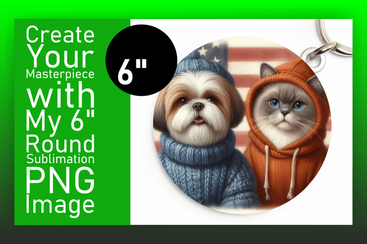 Artful Round Design Coaster PNG , Dog and cat example image 1