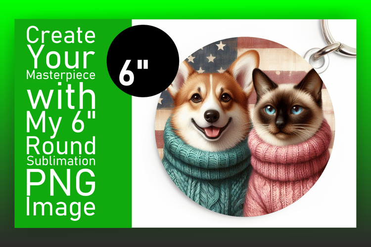 Vibrant Round Design Coaster Artwork , Dog and cat example image 1