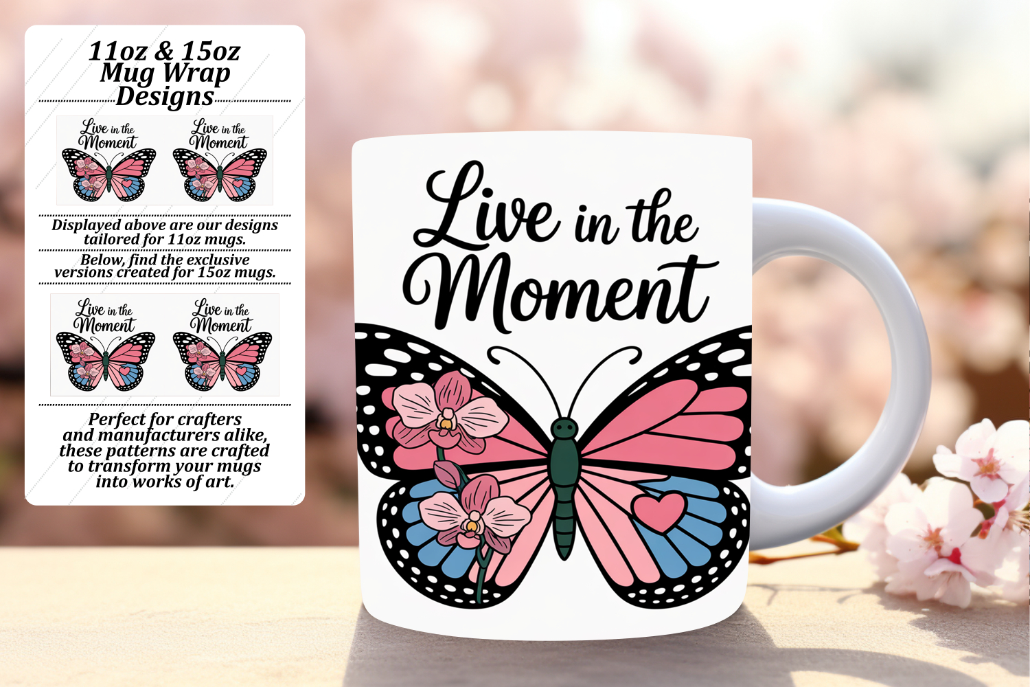 Elegant 15oz Mug Wrap Png Template , Butterfly