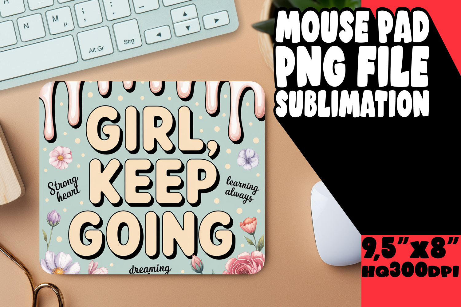WHIMSICAL mouse PAD PNG Design, Girl Quote