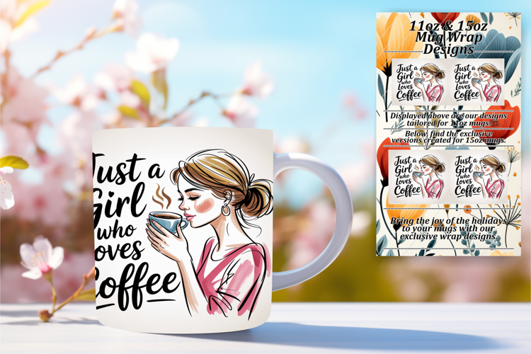 Trendy 11oz Mug Wrap Png Design , Just A Girl