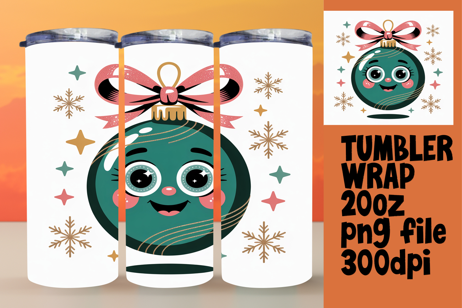 SLEEK PNG Tumbler Design 20oz , Cute Christmas example image 1