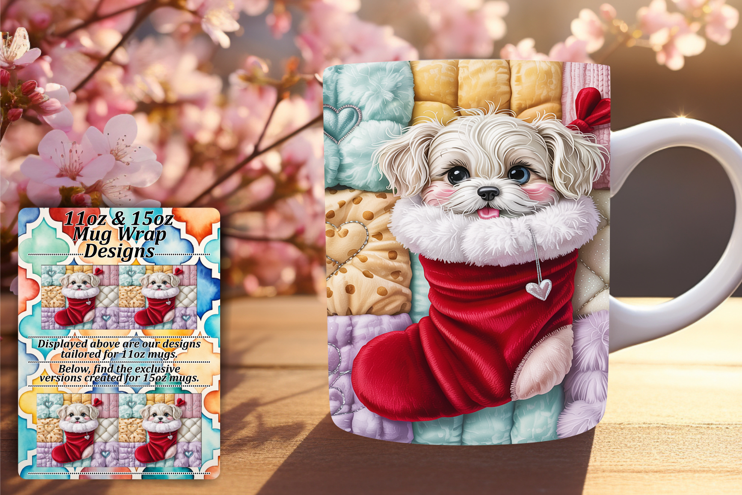Elegant 15oz Mug Wrap Png Template , Holiday Pets