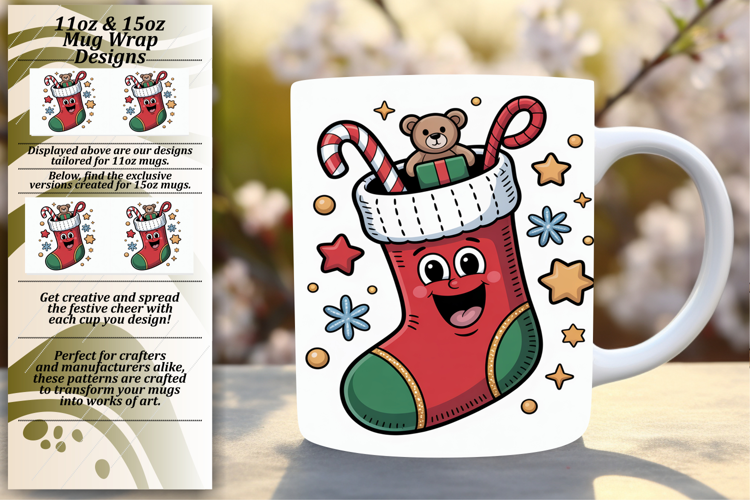 Dynamic 11oz Mug Wrap Png Template , Cute Christmas